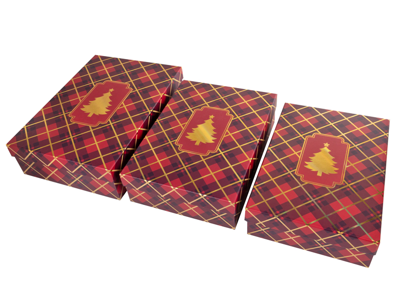 Набір подарункових коробок прямокутних новорічних 3 шт. (27,5х19,5х7,5/29х21х8/33х23,5х9 см)