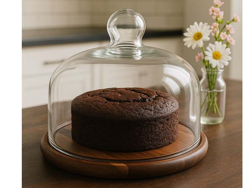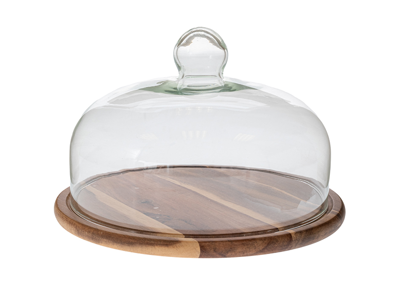 Дерев'яний поднос для сервірування зі скляною кришкою розміром 29x21 см