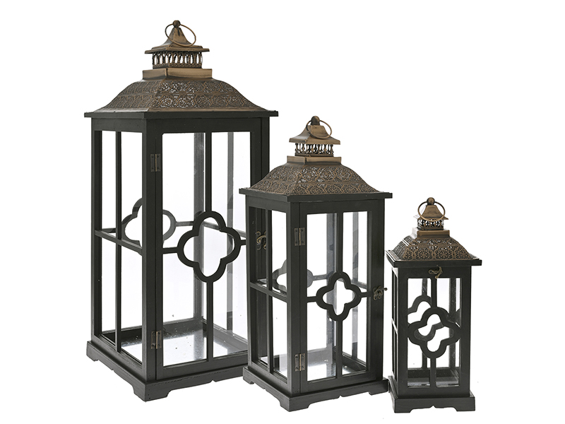 Набір із 3 чорних дерев'яних ліхтарів 32х32х79/24х24х61/17х17х43 см